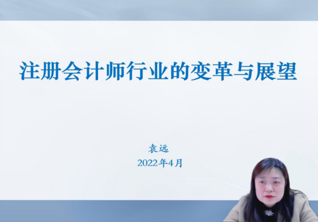 2022年4月17日下午,江苏省注册会计师协会党委副书记袁远女士围绕“注册会计师行业的变革与展望”展开学术报告。本次报告采用线上方式,活动由好色tv 副教授姜涛主持,120多名师生参加。